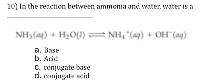 Solved 10) In The Reaction Between Ammonia And Water, Wat from www.chegg.com