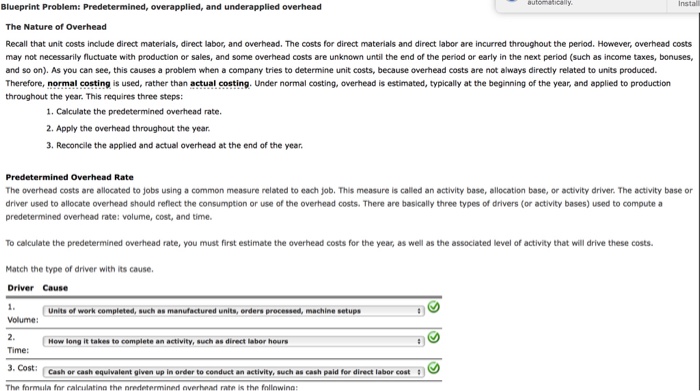 Predetermined overhead rate is used to apply manufacturing overhead to products or job orders and is usually computed at the beginning of each period by dividing the estimated manufacturing overhead cost by an allocation base (also known as activity base or activity driver). Subtract the budgeted overhead costs from the actual overhead costs to determine the applied overhead. Another approach to calculating a single or plantwide overhead rate uses direct cost as a basis, rather than direct labor hours.