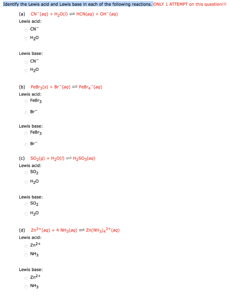 In The Following Reaction Identify The Lewis Acid And Lewis Base. Hno 2 (aq) + oh − (aq) ⇌ no 2− (aq) + h 2 o (l) so 2 (g) + h 2 o (l) ⇌ h 2 so 3 (aq) learn this topic by watching lewis acid and base concept videos. A lewis acid is going to be able to accept a pair of electrons.