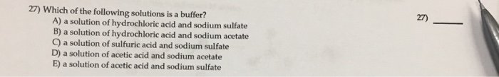 A solution of sulfuric acid and sodium sulfate a solution of acetic acid and sodium sulfate a solution of acetic acid and sodium acetate a solution of hydrochloric acid and sodium acetate a solution of hydrochloric acid and sodium sulfate Which of the following would be the best choice for preparing a buffer with a ph = 8.0? Ethanol is a flammable, colorless, liquid most renown for its use in alcoholic beverages.