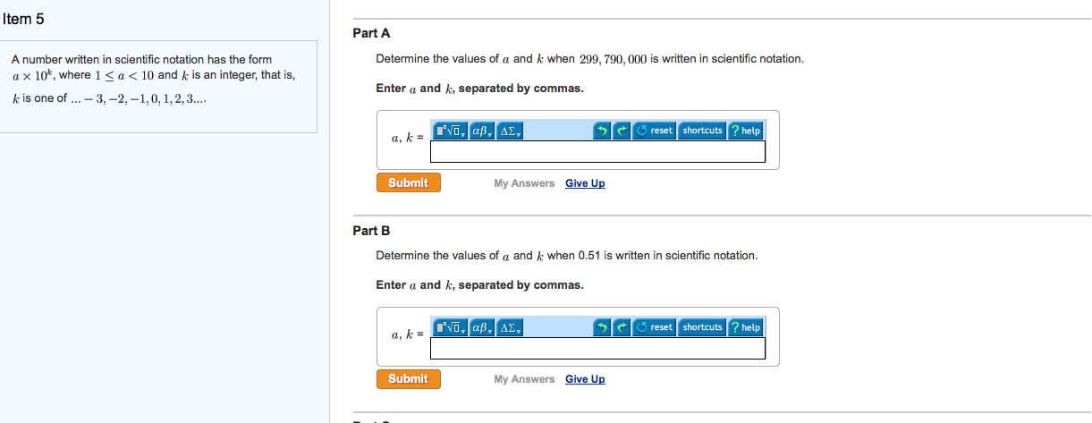 Determine The Values Of A And K When 299 790 000 Is Written In Scientific Notation. (6.67 ×)(5.97 ×) 10 − 11 10 24 (6.38 × 10 6) 2 a k a k enter and , separated by commas. Determine the values of a and k when 299,790,000 is written in scientific notation.